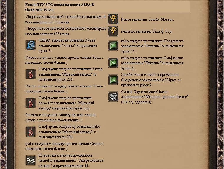 ADVOKAT писал(а):Здесь еще нужно, что бы у магов в твоем ковене было не менее 51% маны, если имеют ЭК, а если ЭК нет, то не менее 75%. В противном случае такие маги считаются не готовыми к поединку.