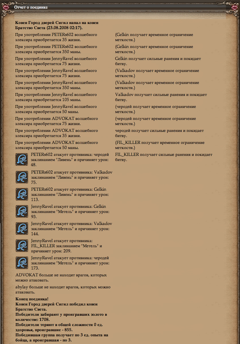 Ковен Dark and Light напал на ковен Город дверей Сигил (07.09.2008 10:49).